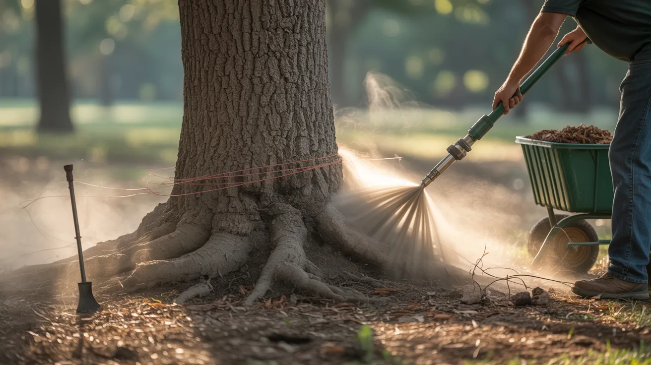 To protect root health, experts use air-spading to fix girdling roots, relieve soil compaction, and reveal flare depth. They'll enrich soil with mulch calibration, organic matter, and biochar where suitable, then fine-tune irrigation to evapotranspiration rates. Nutrient management depends on soil and foliar testing before prescriptions. Lightning protection, clearance pruning from structures and lines, and post-storm triage also decrease risk while protecting canopy health.